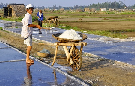 Đợt nắng nóng kéo dài với nền nhiệt cao trải rộng ở khu vực Miền Trung là điều kiện thuận lợi để bà con diêm dân sản xuất muối. Vì thời gian nắng trong ngày kéo dài nên sản lượng muối cũng vì thế tăng cao hơn. Bất chấp cái nắng như thiêu như đốt hàng vạn diêm dân vẫn ngày ngày "nướng" mình lao động sản xuất. Từng hạt muối trắng như thấm đượm những giọt mồ hôi chát đắng của diêm dân.