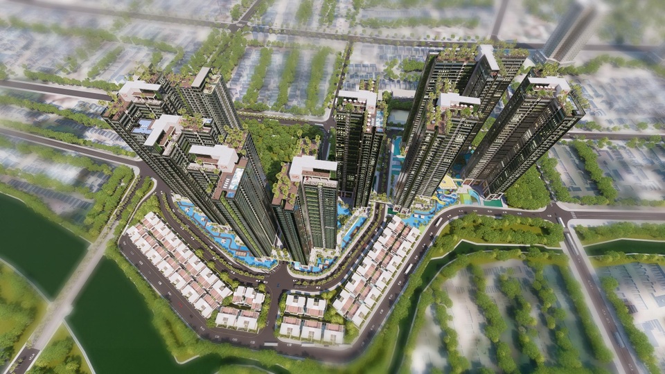 Bề ngoài 9 tòa tháp được ốp kính Low-E chống tia tử ngoại. An ninh của toàn dự án được đảm bảo nhờ công nghệ Face ID tối tân. Để hoàn thiện dự án, chủ đầu tư đã sử dụng gạch Ceramic (như đá cẩm thạch) để lát phòng khách và bếp, khu vực phòng ngủ được lát gỗ nhập khẩu. Toàn bộ thiết bị bếp như vòi rửa, chậu rửa, máy hút mùi, bếp từ cao cấp đều được nhập nguyên chiếc từ Châu Âu, đến từ thương hiệu Franke hoặc Hafele. Toàn bộ nội thất tại nhà vệ sinh như bồn tắm, lavabo, bồn cầu thông minh, vòi sen, phụ kiện phòng tắm… đều được cung cấp bởi thương hiệu Kohler của Đức. Ngay đến cả hệ thống máy lạnh âm trần, máy nóng lạnh, tủ âm tường trong phòng ngủ… chủ đầu tư cũng trang bị chỉn chu cho khách hàng.