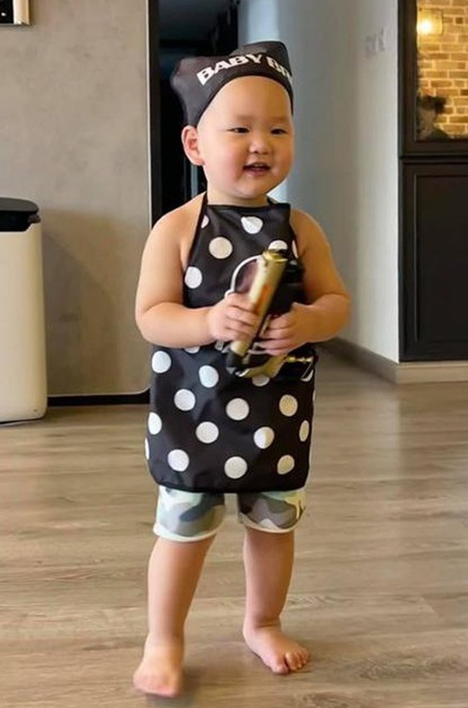 Cậu nhóc còn thường xuyên bị mẹ Trà My trêu khi cho đội tóc giả, đeo tạp dề chấm bi điệu đà… Một điều thú vị là Hayden rất hợp tác với mẹ mỗi khi chụp hình. Thường xuyên bắt trọn những biểu cảm của con, Trà My Idol không ít lần có những loạt ảnh Hayden đang cười toe toét chuyển sang khóc nhè cực dễ thương.