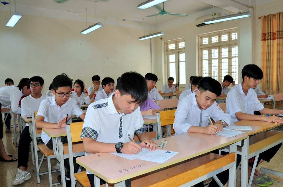 Học sinh làm bài thi lớp 10 môn ngoại ngữ (ảnh: M.H.).
