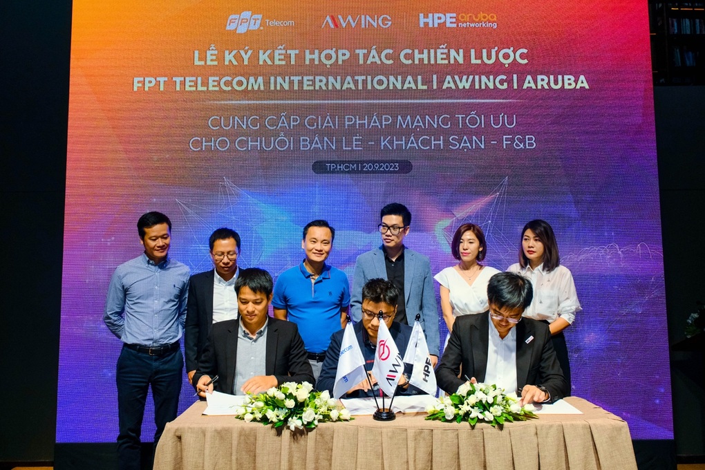 (Dân trí) - Ngày 20/9, Công ty TNHH Một thành viên Viễn thông Quốc tế FPT (FTI) cùng hãng Hewlett Packard Enterprise (HPE) - Aruba - và AWING ký hợp tác chiến lược nhằm cung cấp giải pháp wifi tối ưu cho chuỗi bán lẻ, khách sạn, F&B.