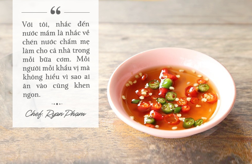 Nói về vai trò của nước mắm trong bữa cơm gia đình Việt, anh Ryan Phạm chia sẻ: "Nước mắm được ví như linh hồn của những món ăn Việt cũng như giữ vị trí trang trọng trong mâm cơm của người Việt".