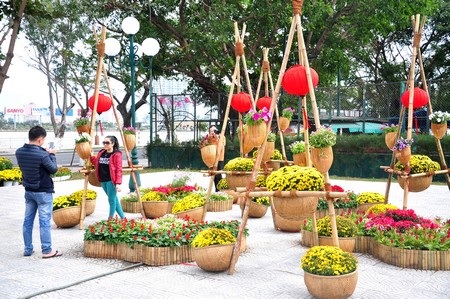 Tuy mới đưa vào hoạt động nhưng đường hoa Xuân Đà Nẵng cũng thu hút khá đông du khách và các bạn trẻ đến tham quan, chụp hình lưu niệm.