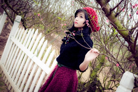 Thiếu nữ Hà thành tinh khôi bên sắc hoa đào