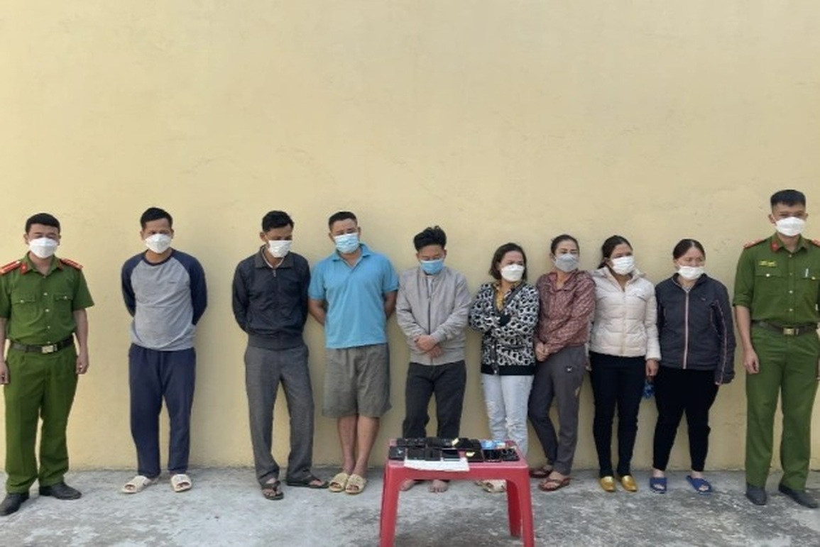 Các đối tượng bị bắt giữ gồm: Võ Hồng Chinh (SN 1989, trú tại xã Diễn Cát); Phạm Thị Hiền (SN 1979, trú tại thị trấn Diễn Châu); Đậu Thị Luận (SN 1986) và Nguyễn Văn Phúc (SN 1997), cùng trú tại xã Diễn Ngọc; Phạm Văn Ngọc (SN 1982), Ngô Văn Khải (SN 1988), Trần Văn Bốn (SN 1975), Nguyễn Thị Thế (SN 1972), Nguyễn Văn Thắng (SN 1991) và Nguyễn Văn Tùng (SN 1976), cùng trú tại xã Diễn Thành, huyện Diễn Châu.