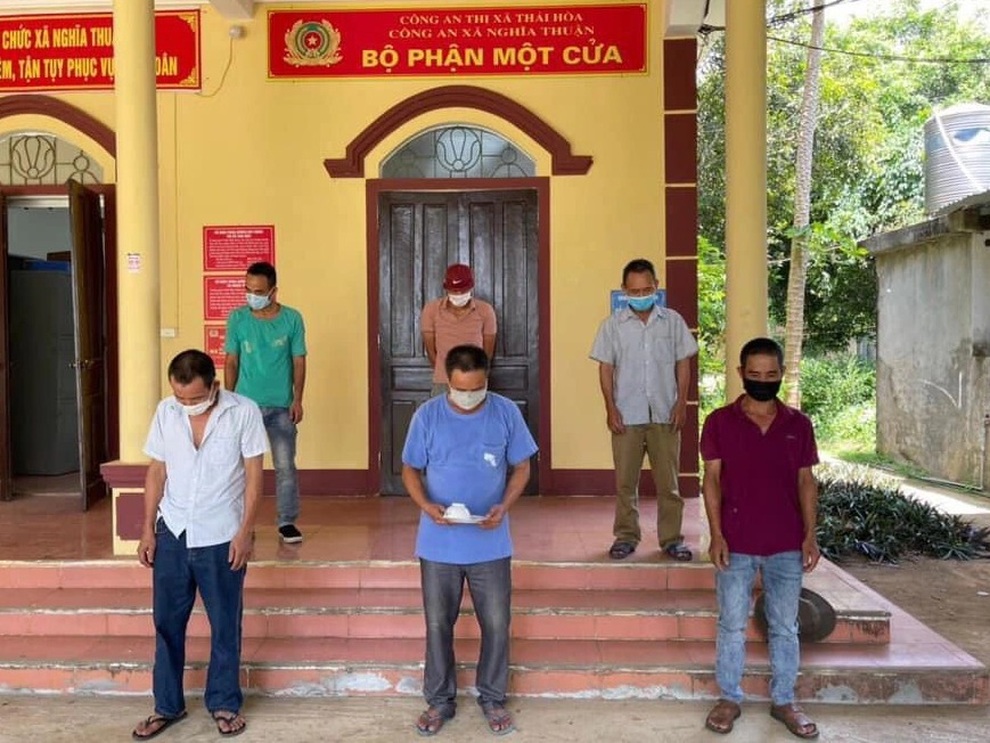 Theo đó, trong thời gian thị xã Thái Hòa đang thực hiện Chỉ thị 16, thì tại khu vực đồi keo thuộc xóm 2 và gia đình bà Ngô Thị C., xóm 4, xã Nghĩa Thuận (thị xã Thái Hòa, Nghệ An) người dân trình báo có hiện tượng tụ tập đánh bạc.