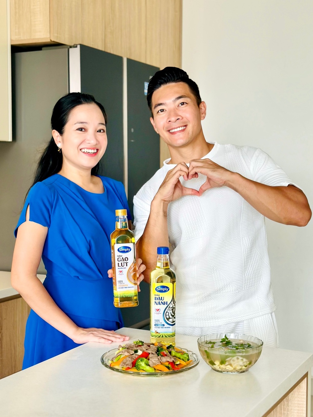 Anh cũng bật mí, ngoài thực phẩm tươi sạch thì luôn sử dụng bộ đôi dầu đậu nành và gạo lứt Simply trong nấu nướng vì đây là loại dầu ăn đã được Hội tim mạch học Việt Nam khuyên dùng trong nhiều năm, có nhiều dưỡng chất tốt cho sức khỏe trái tim nên an tâm sử dụng.