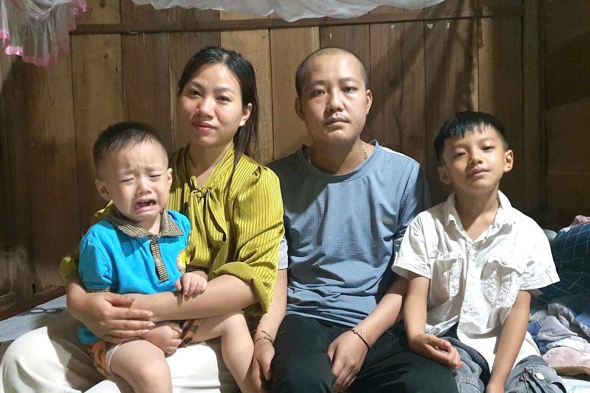 Từ ngày chồng phát bệnh, mọi gánh nặng đổ dồn lên vai chị Lý Thúy Kiều (SN 1996, vợ anh Cà). Chị Kiều là giáo viên Trường Mầm non Nậm Vì (xã Mường Nhé, tỉnh Điện Biên). Ngoài giờ lên lớp, chị phụ mẹ chồng chăm sóc 2 con nhỏ rồi xoay xở lo tiền thuốc men, viện phí cho chồng.