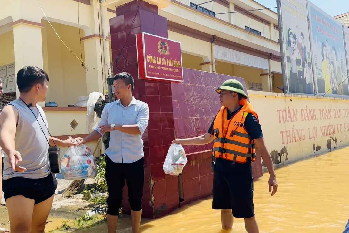 Những ngày lũ lụt, tôi có mặt tại xã Phú Bình, tỉnh Thái Nguyên, vừa tác nghiệp, vừa cùng lực lượng chức năng đi phát lương thực, hỗ trợ người dân tại những vùng bị cô lập.