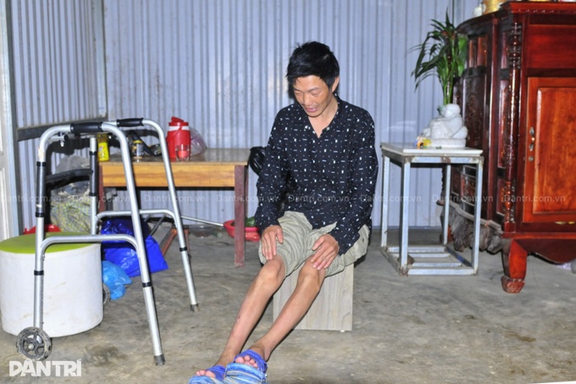 Chân của anh Hoàng Minh bị teo do bệnh hoại tử khớp háng (Ảnh: Minh Hậu).