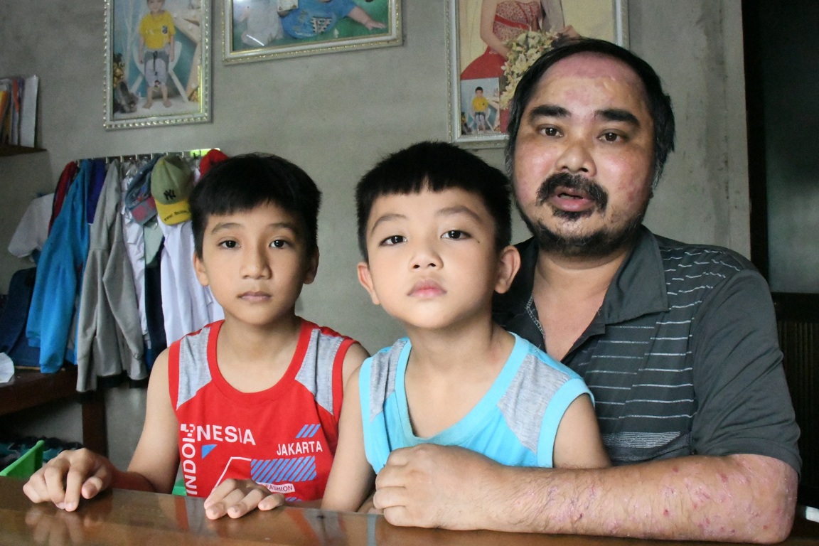 “Mẹ đi TPHCM trị bệnh, ít ngày nữa mẹ sẽ về với các con”, anh Nhất nói với các con.