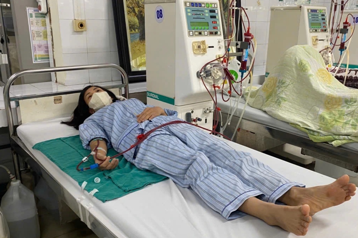 Chị Phượng (mẹ bé Nhi) mắc suy thận giai đoạn cuối, phải chạy thận nhân tạo ở Bệnh viện Bạch Mai 3 lần mỗi tuần (Ảnh: CTV).