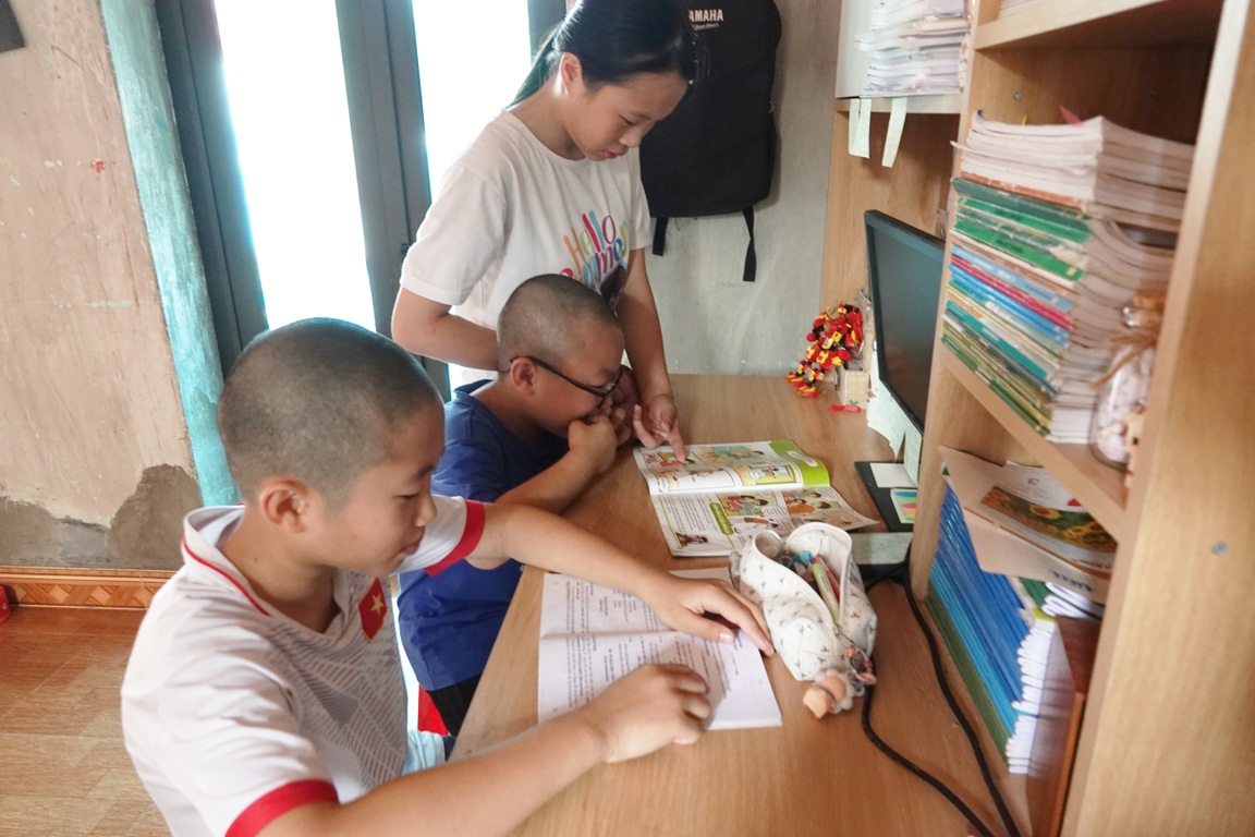 Nhận thức được hoàn cảnh gia đình nhà mình đặc biệt khó khăn nên 3 người con của anh Long đều tự giác học hành và học rất giỏi (Ảnh: Gia Khoa)