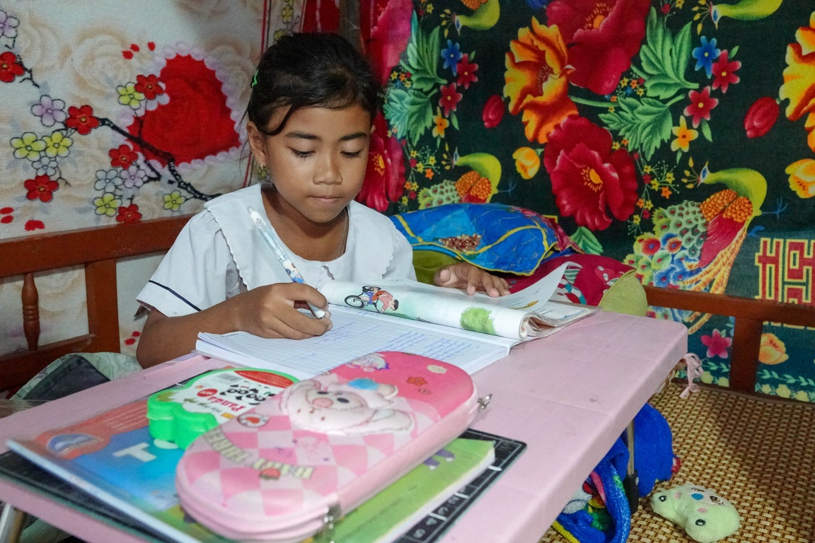 Bé Đào đáng lẽ năm nay học lớp 4, nhưng vì hoàn cảnh khó khăn, em đã phải nghỉ học 2 năm. Dù là người dân tộc Khmer được hưởng chính sách miễn học phí, Bảo hiểm y tế, nhưng các khoản chi phí khác vẫn là gánh nặng.