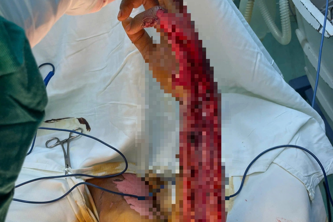 “Chúng tôi đã thông báo với gia đình về nguy cơ phải cắt cụt chi, dù ê-kíp đang cố gắng từng giờ để giữ lại phần tay còn có thể bảo tồn”, bác sĩ nói.