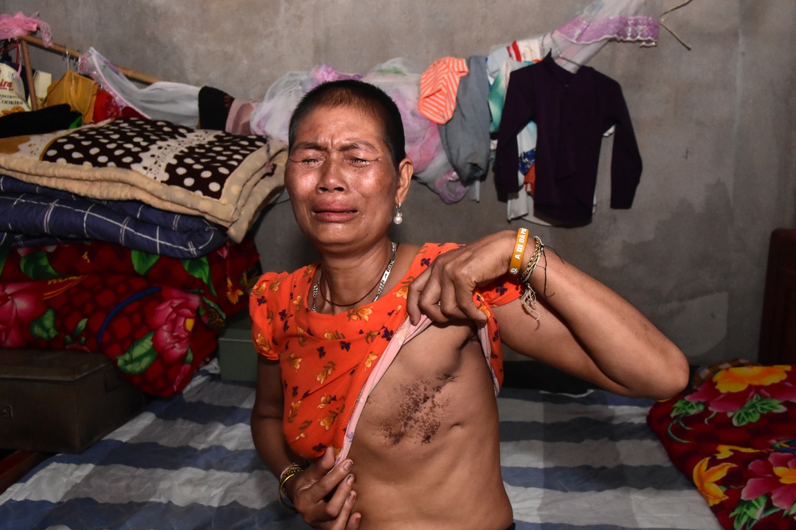 Trong căn nhà cấp 4 ở bản Huổi Cắm (xã Búng Lao, tỉnh Điện Biên), người phụ nữ dân tộc Khơ Mú gầy gò ngồi khóc nức nở trên chiếc giường gỗ cũ. Mái tóc chị thưa thớt, da sạm đen, cơ thể tiều tụy sau những đợt truyền hóa chất điều trị ung thư vú.