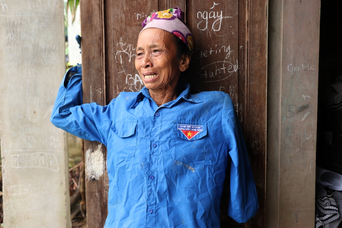 Bão tan, bà Hòa đứng giữa sân khóc tu tu như một đứa trẻ. Mái ngói bị xô lệch, nước tràn vào nhà nhấn ướt hết đồ đạc. Gian nhà bếp phía sau bị cuốn bay hoàn toàn mái lợp. Trước đó, tài sản có giá trị duy nhất của bà Hòa là con bò được Hội phụ nữ hỗ trợ, đã được mang đi gửi ở nơi khác nên vẫn an toàn.