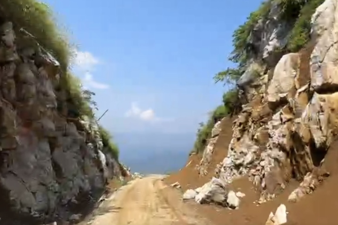 Khi chiếc xe bò lên được tới đỉnh núi, chúng tôi lại phải tiếp tục đi men theo con đường nằm vắt vẻo trên đỉnh núi như sợi dây thừng. Ở đây, những viên đá to bằng nắm đấm, bằng cái bát con sắc cạnh dựng lên như muốn chọc thủng lốp xe. Chỉ cần một chút chệch tay lái có thể chúng tôi phải trả giá bằng cả tính mạng.