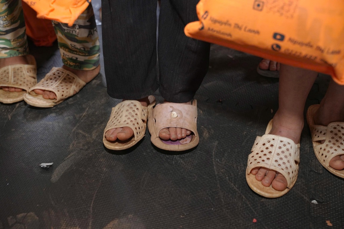"Trời khô ráo còn đi bộ được, chứ trời mưa đường trơn như đổ mỡ, nhiều em đến trường quần áo toàn bùn đất, không có cái gì mà thay. Ở đây quần áo của các em đa số là do các nhà hảo tâm tặng" cô Thúy bộc bạch.