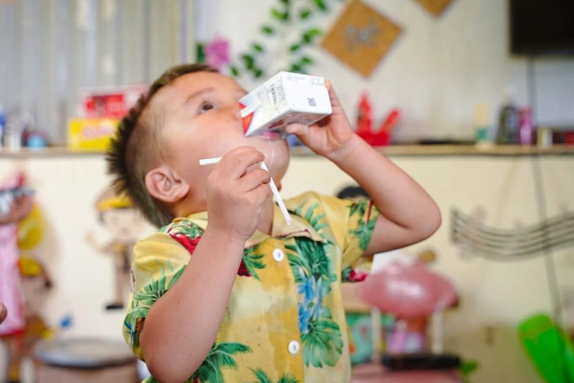 Từ chiếc áo, cái quần của các em học sinh nơi đây chủ yếu do các đoàn thiện nguyện mua tặng. Với các em được uống một hộp sữa tươi là điều xa xỉ (Ảnh: Quốc Hưng).