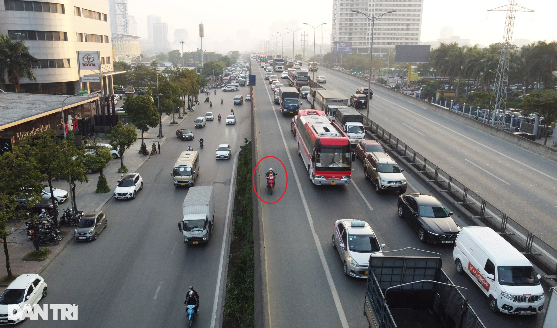 Ngoài ô tô vi phạm, nhiều trường hợp xe máy cố tình đi lên đường cấm Vành đai 3 trên cao.